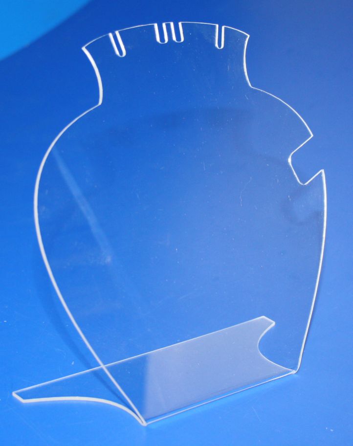 За изработката на всички поставки използваме плексиглас с дебелина 2 или 3 мм., а като допълнителна опция можем да направим лазерно гравиране на фирменото Ви лого в основата на поставката или да поставим рекламен стикер.