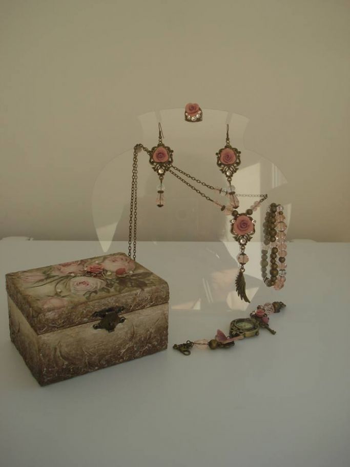 Бъдете сигурни, че какъвто и вариант да изберете все няма да сгрешите. Преди всичко трябва да помислите за удобството на демонстриране на продуктите и за най-подходящото им представяне. В конкретният случай за комплекта с бижута можете да избирате от поне три варианта: