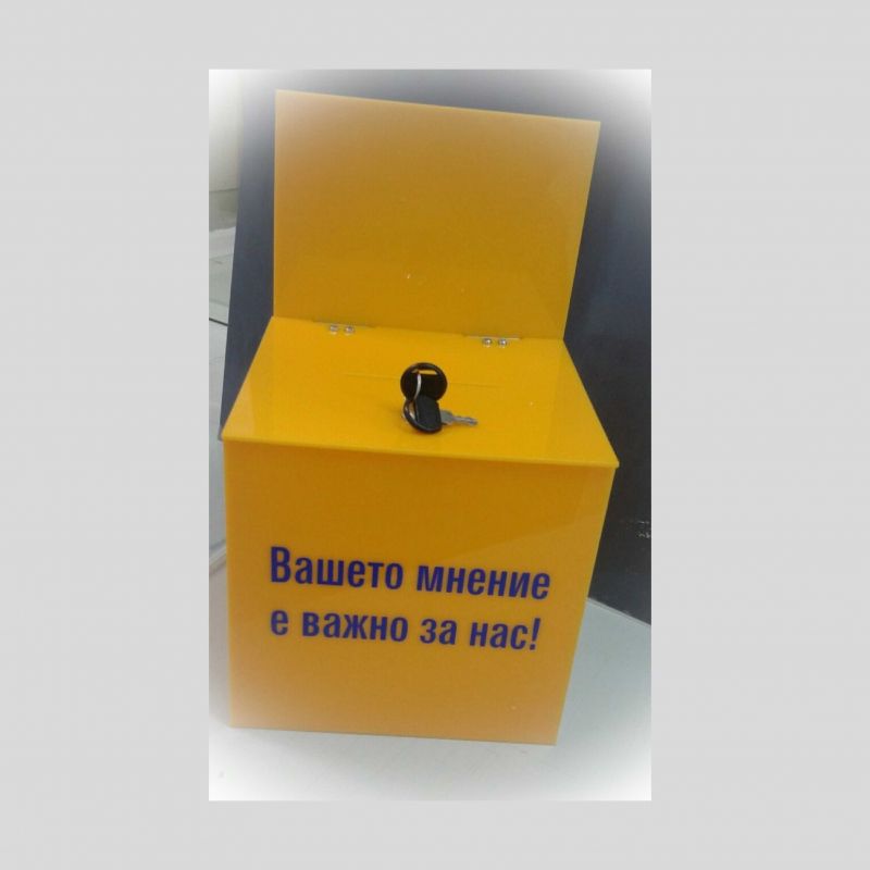 - Кутии за жалби, препоръки, похвали, мнения и предложения