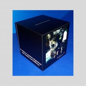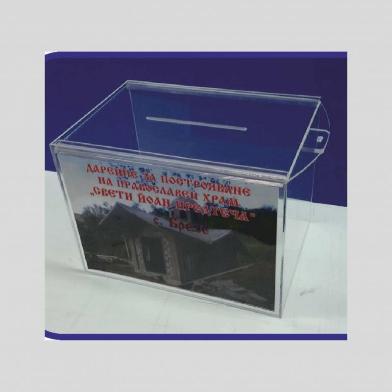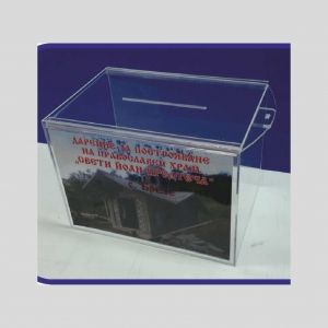 урна за дарения от черен плексиглас, брандирана