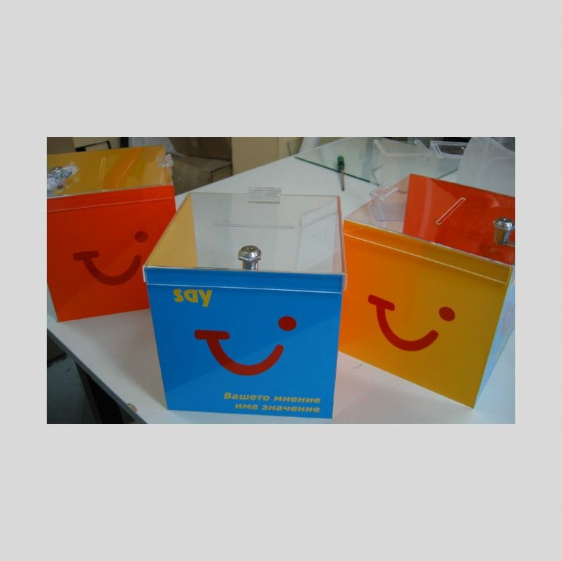 Кутии, урни и касички от плексиглас за дарения, томболи и събития