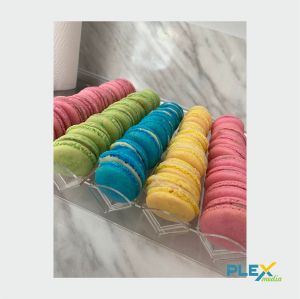Дисплей / стелаж за френски макарони. Съдържа контейнерчета за френски макарони. Подходящ за сладкарници, бутикови пекарни, пекарни, хранителни магазини