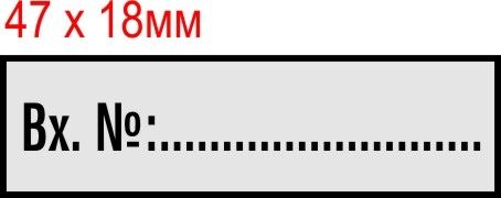 Гумен отпечатък с надпис "ВХОДЯЩ НОМЕР...". Размер 47х18мм. В комплект с обикновена акрилна дръжка. Ако желаете автоматичен механизъм, разгледайте в сайта и вижте цените.