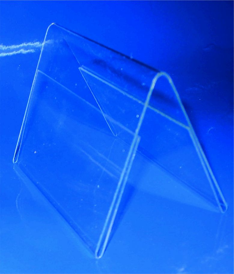 Стойка за етикет двулицева 100 х 70мм. Изработена от прозрачен материал. Подходяща за витрини и щандаве за магазини. Предлагат се в пакет по 10 бр.