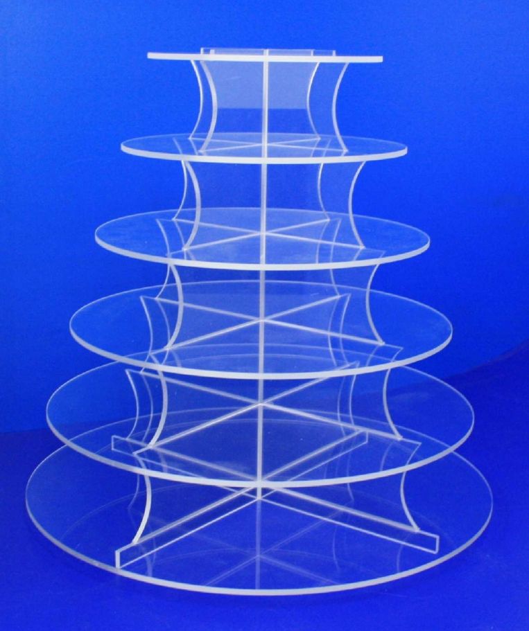 Стойка от плексиглас на 6 нива. Подходяща за кетъринг. Мобилна и разглобяема парти стойка за кетъринг е изработена от прозрачен плексиглас с дебелина 5 мм., който я прави напълно стабилна и същевременно лесно преносима. Размера на основата е 41 см., а височината 45 см.