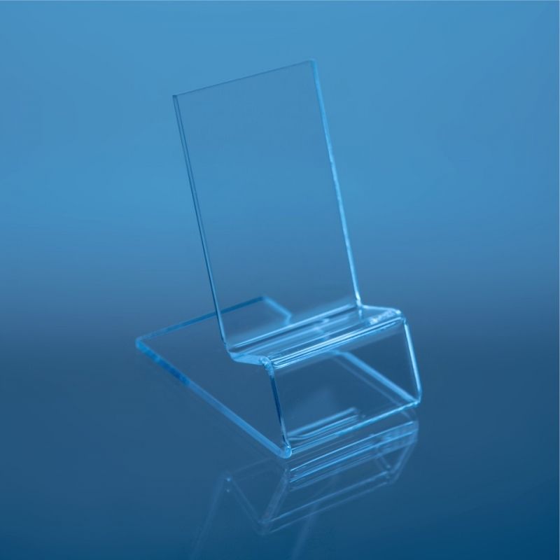 Стойка за смартфон, изработена от прозрачен плексиглас с ширина 65 мм.