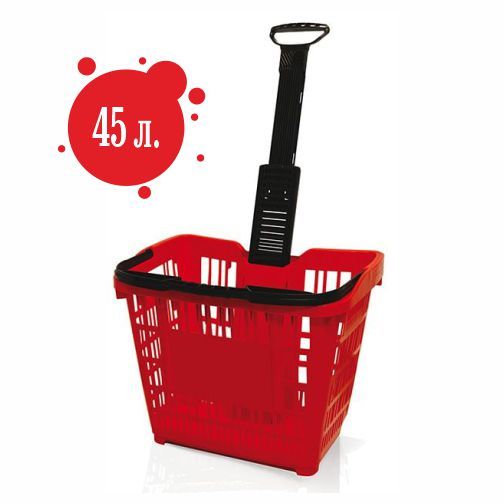 Удобна и здрава кошница за пазаруване с обем 45 литра, телескопична дръжка и колелца – идеална за магазини, които ценят комфорта на клиентите си.