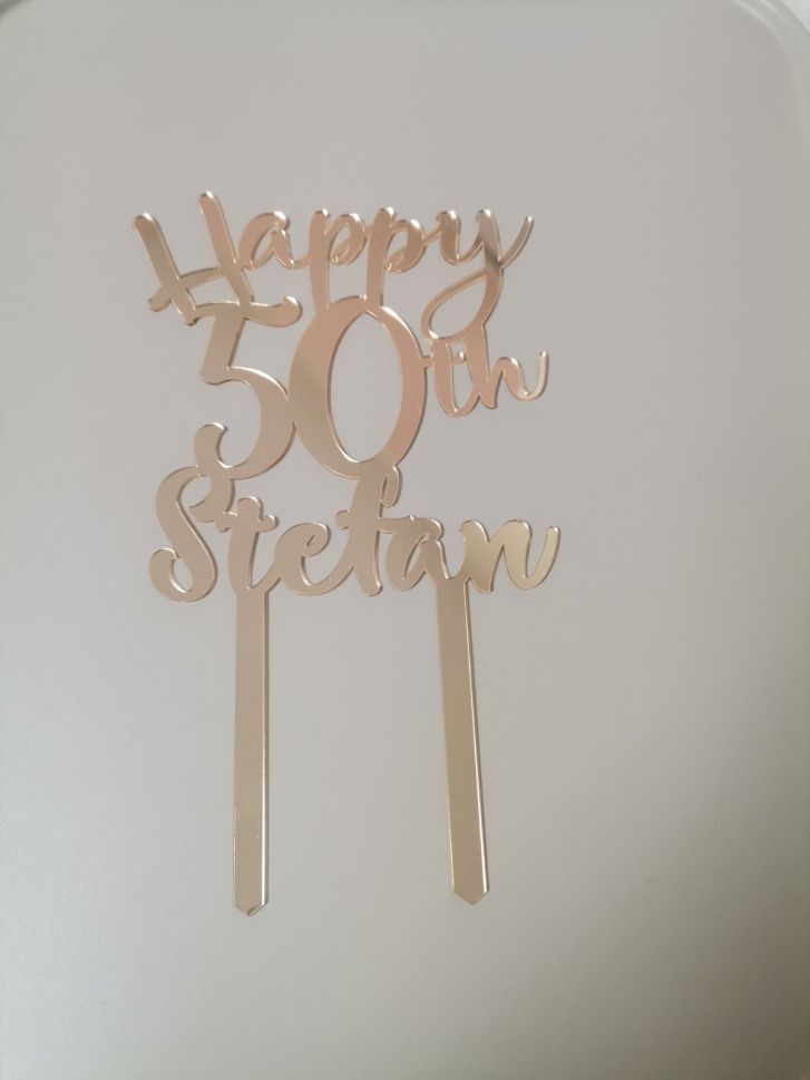 Превърнете 50-тия юбилей в незабравим момент с нашия персонализиран топер за торта! Изработен от елегантен златен плексиглас, този топер е перфектният завършек на вашата торта.