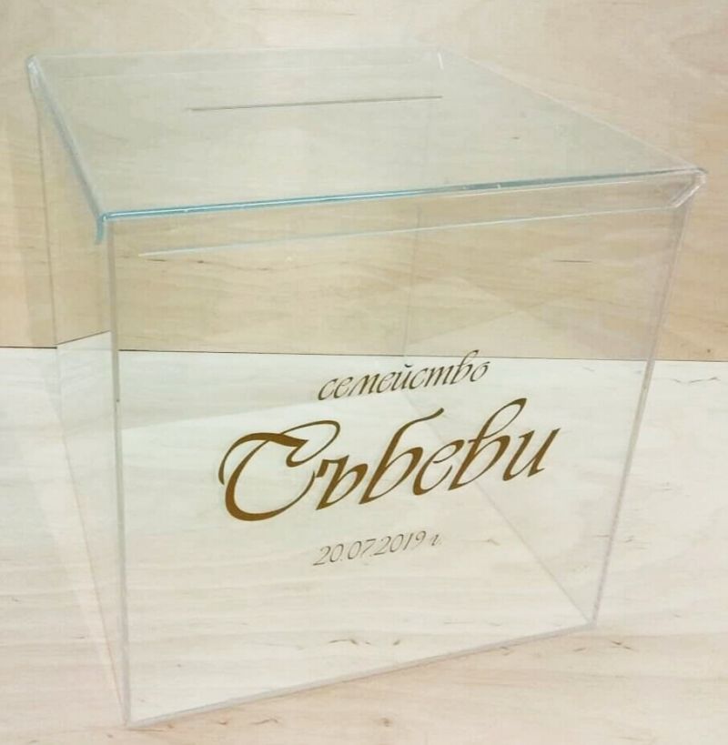 Създайте елегантен кът за вашите пликове с пари с нашата прозрачна кутия! Подходяща за сватби и семейни тържества.
