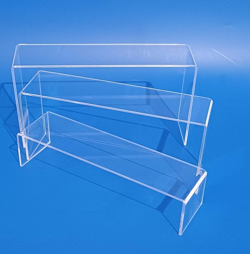 Комплект от три П-образни подиума от плексиглас – различни височини за елегантно представяне на продукти