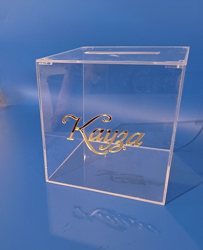 Кутия от прозрачен плексиглас с надпис „Кауза“ – стилен акцент за сватби и събития